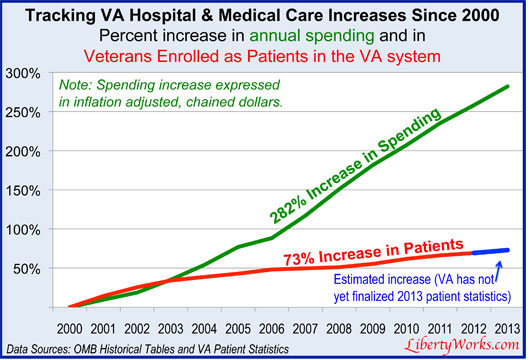 As the chart above shows VA health care spending has soared way past the increase in patients since the Afghanistan