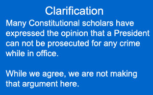 There is a way, only one way, to punish a President for his thoughts or motives behind legal, Constitutionally authorized actions: Impeachment. This is a political, not criminal justice process. There is no need to prove beyond a reasonable doubt that a President did something illegal. All it takes a simple majority of the House of Representatives and a two-thirds majority of the Senate to agree that a President’s actions and/or motives were unacceptable.
