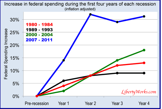 The Keynesians, who never seem to notice the flaws in their theories, are already laying the groundwork for another tsunami of government spending when the next recession hits. Astoundingly, their explanation for the failure of Obama’s spending binge to create as many jobs as were created in any of the ten previous recoveries is that his unprecedented increase in government borrowing and spending wasn’t enough!