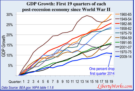 If the first quarter of 2014 turns out to be the beginning of a new recession – and based on history the odds strongly favor such an outcome – the President will likely claim, as he has during each of his Administration’s crises and scandals, that he had no warning and learned about the recession from the news. But the truth will be that his big government initiatives will be to blame both for the anemic, nearly jobless recovery we’ve seen since the end of the 2008-09 recession, and for the new 2014 recession.