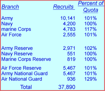 The Services just released their recruiting statistics for July and all of them met or exceeded their quotas.